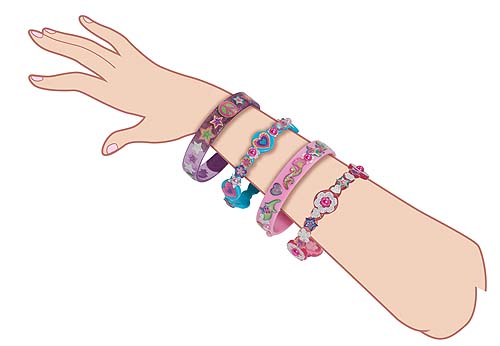 Kolejnym podobnym rozwiązaniem są bransoletki. W zestawie cztery bazy, które można ozdobić według własnego pomysłu dołączonymi naklejkami. Super zabawa i indywidualna bransoletka. Taką bransoletkę można również śmiało podarować najlepszej koleżance.